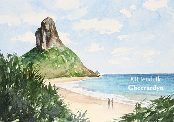 Morro do Pico and Praia da Conceição (Fernando de Noronha, Brasil) (34×24 cm, watercolour)