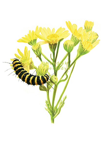 Cinnabar moth on Ragwort (watercolour)