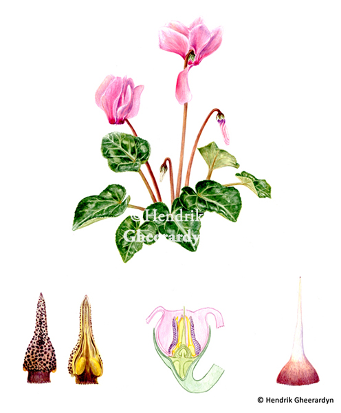 Botanical plate of Cyclamen persicum, watercolour – for RBGE Certificate in Botanical Illustration, July 2014
