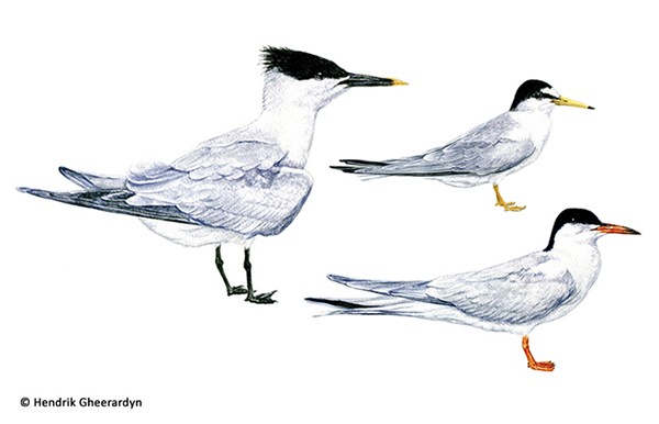 Sandwich tern, Little tern and Common tern, watercolour – published in scientific report, February 2014