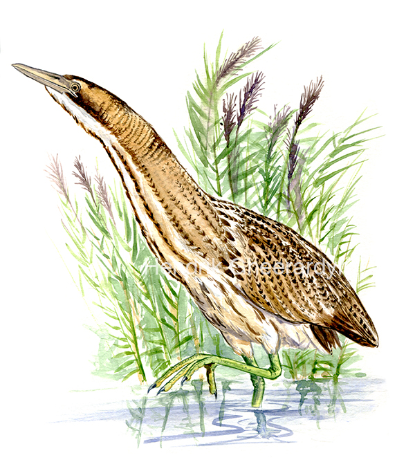 Eurasian bittern, Botaurus stellaris (watercolour)