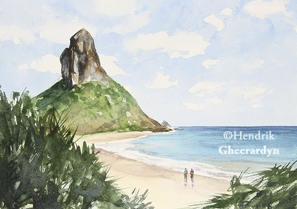 Morro do Pico and Praia da Conceicao, Fernando de Noronha, Brazil (watercolour, 160 euro)