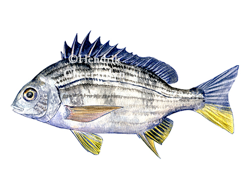 Yellowfin seabream – Acanthopagrus latus (watercolour)